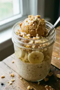 Start your day right with creamy high protein peanut butter banana overnight oats—perfect for a nutritious breakfast or a post-workout boost.