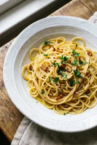 • A side salad with a light vinaigrette to balance the richness of the pasta.